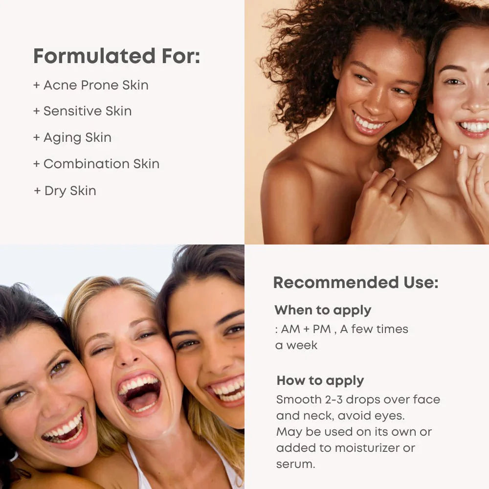 • 10% Azelaic Acid Serum: Reduces redness and refines skin texture